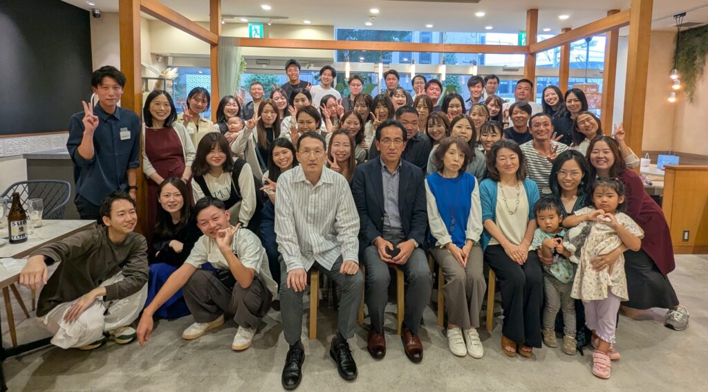 令和7年10月11日、名古屋にて通算73期(瑞浪47期)の同窓会を開催しました。2020年、卒業10年で開催予定でしたがコロナ禍で開催が難しくなり、5年越しの開催となりました。恩師の蟹井先生、安藤先生、伊藤圭子先生、呉羽先生が足を運んでくださり、総勢約50名の賑やかな会となりました。卒業以来となる再会も多く、瑞浪での懐かしい思い出話や現状報告など、3時間では時間が足りないほどでした。会場では同級生が丹精込めて作っている日本酒やリンゴジュースが振る舞われ、みんなが日本各地で頑張っていることを感じ元気づけられました。30代半ば、それぞれ人生の岐路は沢山ありますが、また数年後に皆で集まって楽しい時間を過ごしましょう!(幹事:浦上 加珠巳)